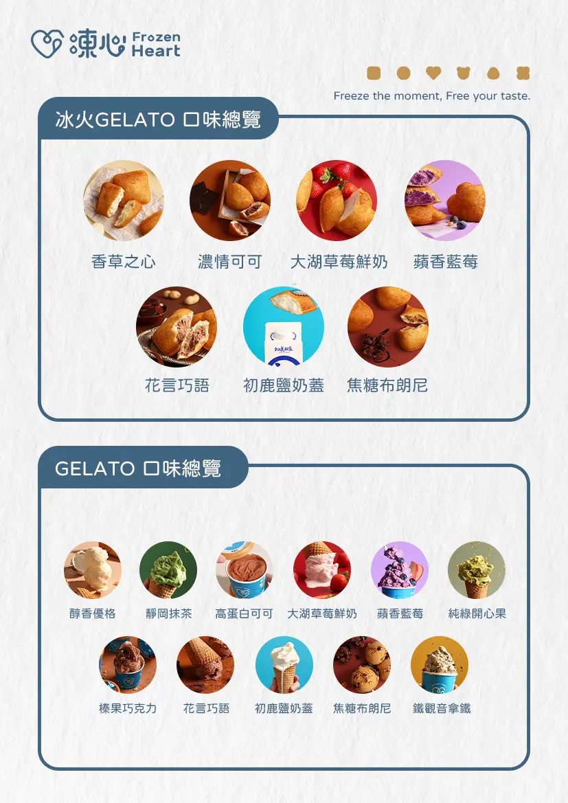 從一張桌子的炸冰淇淋開始,凍心在義式冰淇淋Gelato領域奠定深厚基礎。憑藉對水果和食材的專業掌握,我們成功拓展至果醬、優格飲等產品線。未來,我們將持續拓展國內外市場,期待能透過這些精心研製的美味,將幸福傳遞給全世界。